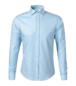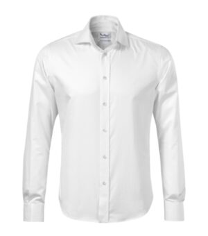 zaprojektowany przez czołowego czeskiego krawca Romana Humlíčka, przędza z bardzo długich włókien, dopasowany krój z bocznymi szwami, podwójny karczek i zaszewki z tyłu, kołnierzyk koszulowy, wzmocnione wykończenie kołnierzyka, części przednie wykończone plisą, długie rękawy z półokrągłym mankietem na 2 guziki, perłowe guziki w kolorze 00 (2 zapasowe guziki), zaokrąglona dolna krawędź