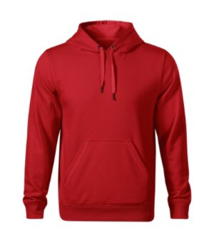 prosty krój ze szwami bocznymi, kostkowy zamek błyskawiczny na całej długości, kaptur z podszewką bez sznurka ściągającego, lamówka na karku wzmocniona kontrastową taśmą, kieszenie naszyte typu kangurka, dolny ściągacz i mankiety rękawów z dzianiny ściągaczowej 2:2 z dodatkiem 5 % elastanu, czesana strona wewnętrzna