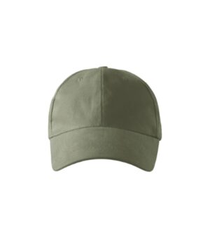 krój pięciopanelowy, klejony panel przedni, wyszywany, lekko zakrzywiony daszek, haftowane otwory wentylacyjne, opaska pochłaniająca pot, rozmiar regulowany za pomocą mosiężnego klipsa