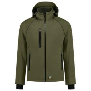 poliester pochodzący z recyklingu, wiatroodporny i wodoodporny materiał, nowoczesny miękki wygląd, odblaskowy nadruk wzdłuż wejścia do kieszeni i na środkowej części pleców, prosty krój ze szwami bocznymi, zamek błyskawiczny na całej długości z ochroną podbródka i klapą sztormową zamykaną na kryte zatrzaski, kołnierzyk stojący, rękawy z elastycznym paskiem po bokach, lewa strona klatki piersiowej jest wykonana z materiału softshell, gotowego do ewentualnego wykonania nadruku, zapinana na zamek kieszeń na piersi, z wewnętrzną szlufką na identyfikator, kieszenie zapinane na suwak, kieszenie zapinane na zamek YKK, dostęp dla brandingu, dolna lamówka wykonana ze ściągaczem, Tricorp kod produktu: 402710, TOWAR DOSTĘPNY NA ZAMÓWIENIE W DZIALE SPRZEDAŻY