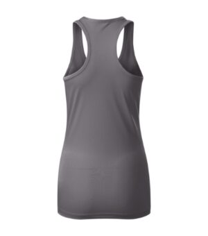 gładki, szybkoschnący materiał, dopasowany krój ze szwami bocznymi, wcięcia przy łopatkach (racerback), szersza okrągła lamówka, dekolt oraz otwory wokół ramion wykończone lamówką z materiału wierzchniego, idealna do uprawiania sportu i aktywności fizycznej, materiał przystosowany do sublimacji (jasne kolory)