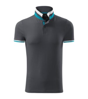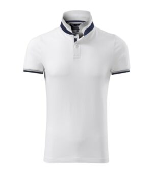 krój z bocznymi szwami, kołnierzyk oraz lamówka z dzianiny ściągaczowej 1:1, dolna część kołnierzyka i wykończenie rękawków kontrastowymi paskami, plisy z 2 guzikami w kolorze materiału, rozporki w szwach bocznych i na dole plisy wzmocnione kontrastową taśmą, wewnętrzna część lamówki wykończona kontrastową taśmą , szew na ramionach wzmocniony taśmą