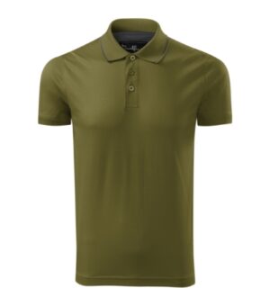 krój z bocznymi szwami, kołnierzyk ozdobiony paskiem w kontrastowym kolorze, uszyty z dzianiny ściągaczowej 1:1, plisy z 3 guzikami w kolorze materiału, rozporki w bocznych szwach wzmocnione taśmą w kontrastowym kolorze, wewnętrzna część lamówki wykończona kontrastową taśmą, szew na ramionach wzmocniony taśmą, merceryzowana bawełna