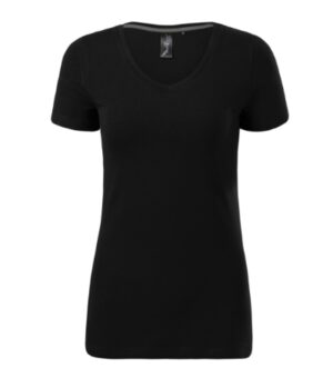 elastyczna tkanina utrzymująca kształt, krój slim-fit ze szwami bocznymi, lamówka w kształcie V, wąska lamówka z dzianiny ściągaczowej 1:1 z dodatkiem 5 % elastanu, lamówka na karku wzmocniona kontrastową taśmą, szew wzmacniający na ramionach, krótkie, dopasowane rękawy