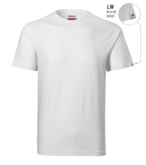 trwały, idealny do środowisk pracy, bez szwów bocznych, dekolt wykończony dzianiną ściągaczową 1:1, taśma wzmacniająca na ramionach, Produkt dostępny w dwóch wersjach: z metką firmową na obszyciu rękawa lub bez (patrz zestawienie kolorów). Opcja bez metki tylko do wyczerpania zapasów.