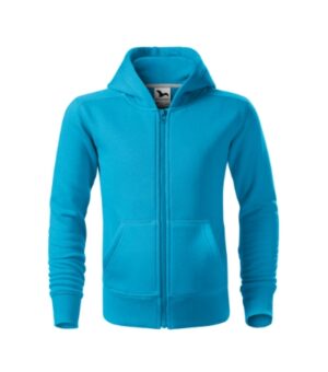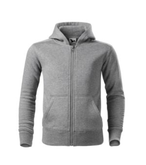 prosty krój ze szwami bocznymi, kostkowy zamek błyskawiczny na całej długości, kaptur z podszewką bez sznurka ściągającego, lamówka na karku wzmocniona kontrastową taśmą, kieszenie naszyte typu kangurka, dolny ściągacz i mankiety rękawów z dzianiny ściągaczowej 2:2 z dodatkiem 5 % elastanu, czesana strona wewnętrzna