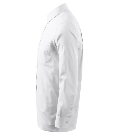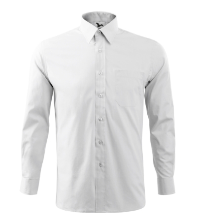 klasyczny krój ze szwami bocznymi, podwójny karczek i zakładki z tyłu, kołnierzyk koszulowy, części przednie wykończone plisą, kieszeń na piersi, długie rękawy z półokrągłym mankietem na 1 guzik, guziki w kolorze materiału (2 zapasowe)