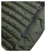 składany do wewnętrznej kieszeni, pikowany lekki, ciepły materiał, krój z bocznymi częściami, kostkowy zamek błyskawiczny na całej długości z ochroną podbródka, kieszenie z formowanym zamkiem błyskawicznym, kieszeń wewnętrzna zapinana na rzep, dostęp do brandingu z boku, regulacja kołnierza elastycznym paskiem