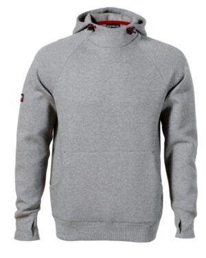 prosty krój ze szwami bocznymi, kaptur z podszewką ściągany za pomocą sznurka, wewnętrzna tylna część lamówki wzmocniona kolorową taśmą z materiału wierzchniego, kieszeń typu kangurka, dolny ściągacz i mankiety rękawów z dzianiny ściągaczowej 2:2 z dodatkiem 5 % elastanu, czesana strona wewnętrzna