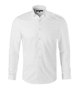 dopasowany krój z bocznymi szwami, podwójny karczek i zaszewki z tyłu, kołnierzyk koszulowy, wzmocnione wykończenie kołnierzyka, części przednie wykończone plisą, długie rękawy ze ściętymi mankietami i 2 guzikami, perłowe guziki w kolorze materiału (1 zapasowy), zaokrąglony dół