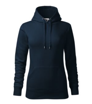 dopasowany krój ze szwami bocznymi, kaptur z podszewką ściągany za pomocą sznurka, wewnętrzna tylna część lamówki wzmocniona kolorową taśmą z materiału wierzchniego, kieszeń typu kangurka, dolny ściągacz i mankiety rękawów z dzianiny ściągaczowej 2:2 z dodatkiem 5 % elastanu, czesana strona wewnętrzna