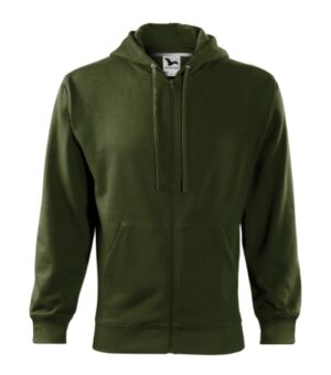 prosty krój ze szwami bocznymi, kostkowy zamek błyskawiczny na całej długości, kaptur z podszewką bez sznurka ściągającego, lamówka na karku wzmocniona kontrastową taśmą, kieszenie naszyte typu kangurka, dolny ściągacz i mankiety rękawów z dzianiny ściągaczowej 2:2 z dodatkiem 5 % elastanu, czesana strona wewnętrzna