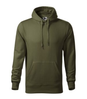 prosty krój ze szwami bocznymi, kaptur z podszewką ściągany za pomocą sznurka, wewnętrzna tylna część lamówki wzmocniona kolorową taśmą z materiału wierzchniego, kieszeń typu kangurka, dolny ściągacz i mankiety rękawów z dzianiny ściągaczowej 2:2 z dodatkiem 5 % elastanu, czesana strona wewnętrzna