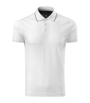 krój z bocznymi szwami, kołnierzyk ozdobiony paskiem w kontrastowym kolorze, uszyty z dzianiny ściągaczowej 1:1, plisy z 3 guzikami w kolorze materiału, rozporki w bocznych szwach wzmocnione taśmą w kontrastowym kolorze, wewnętrzna część lamówki wykończona kontrastową taśmą, szew na ramionach wzmocniony taśmą, merceryzowana bawełna